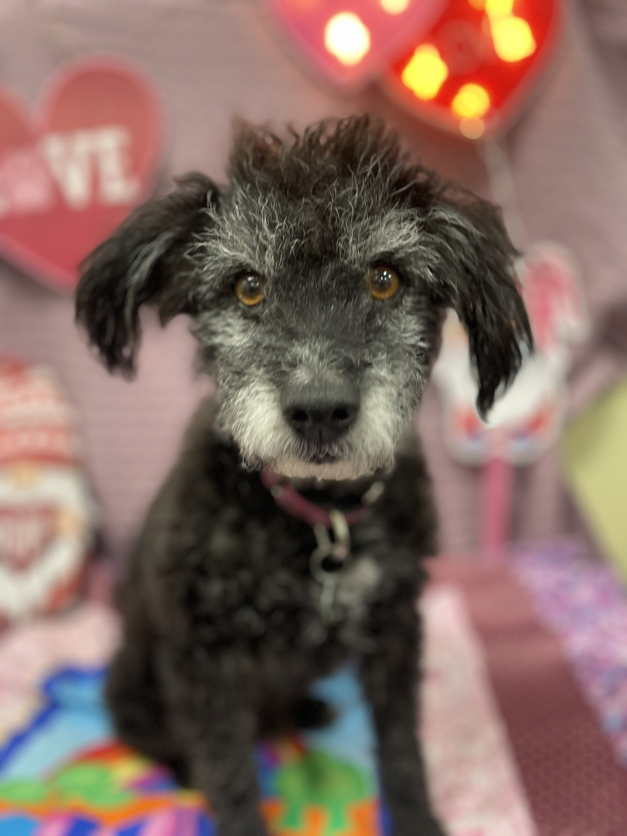 Bubbles is AMAZING! He loves his people, is an expert snuggler, is a DREAM on the leash, AND can be groomed with clippers by novices without restraint?! Ok, ok, so he isn’t perfect. It would not be fair to the rest of the dogs if he were. His flaws: He loves his people. And hates being kenneled away from them. Also, he’s got a minor incontinence issue, where he dribbles a bit of urine sometimes. He is otherwise house-trained and doesn’t mind wearing his belly bands.