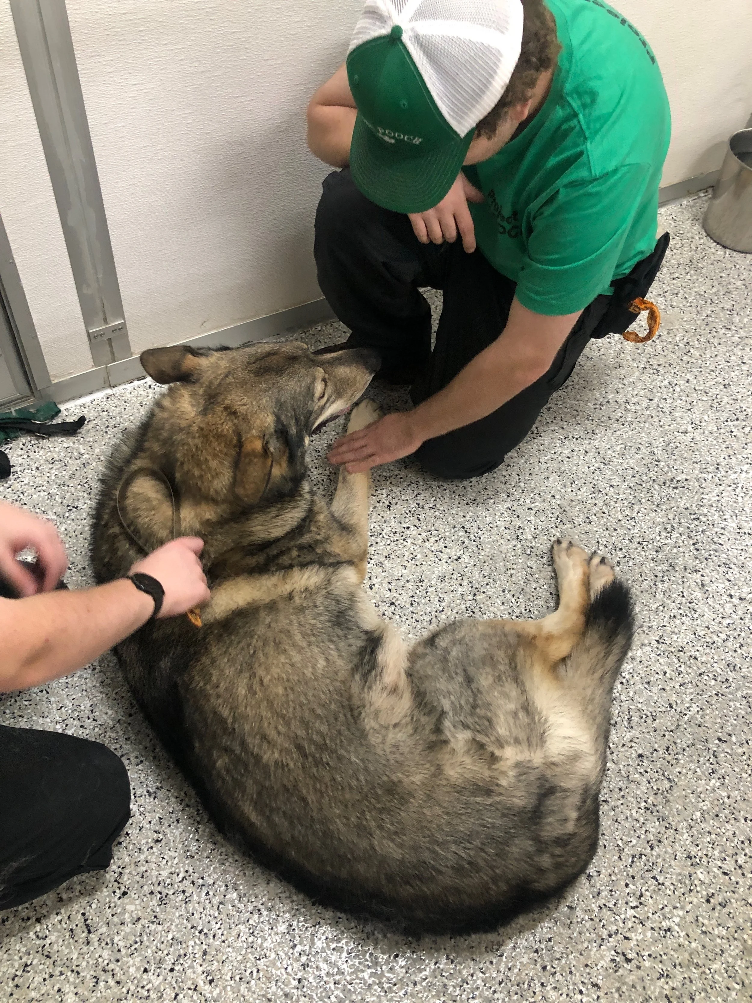Days at POOCH start bright and early. First up is cleaning and sanitizing the kennels. This is a critical step to ensure the health and safety of the dogs. Our goal is for each dog to be out of their kennel for a minimum of 2–3 hours a day; with a goal of being out of their kennel for the majority of our open hours. This outside of kennel time could be walks, yard time, classroom time, time at our training center, our kennel buddy time. The important thing is the dogs are getting their needs met, whatever those needs are.
